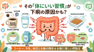 健康に良い食品も腸の状態によっては下痢の原因になります。脂質は消化を助ける胆汁酸が大腸を刺激し、コーヒーはホルモン分泌で腸を激しく動かします。牛乳の乳糖や納豆のオリゴ糖は、腸内での急激な発酵や水分調整の乱れを招きます。空腹時のコーヒーを避け、低乳糖の牛乳を選び、納豆は量を調整して摂取するのが得策です。