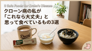 我慢ばかりでは食事の楽しみが失われてしまう——そんな思いから、クローン病の私が実際に食べているものを3つ紹介します。カフェインレスコーヒー、脂肪ゼロヨーグルト、韓国海苔フレーク。あくまで個人の体験ですが、参考になれば嬉しいです。